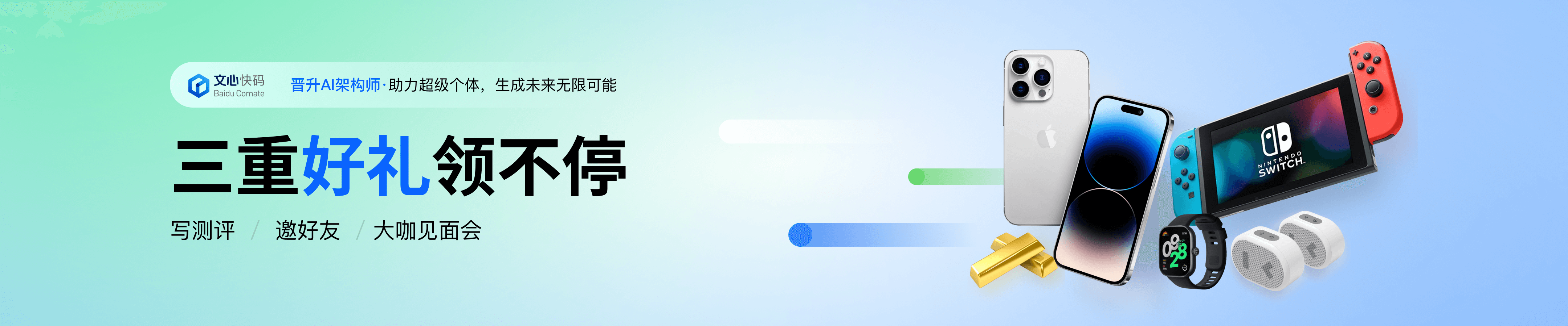 文心快码(Baidu Comate)是一款又好又快的智能代码助手。基于文心大模型,结合百度积累多年的编程现场大数据和外部优秀开源数据,新一代编码辅助工具文心快码拥有代码智能、场景丰富、创造价值、广泛应用等多重产品优势,可实现“帮你想、帮你写、帮你改”的场景应用形态。提升编码效率,释放“十倍“软件生产力。